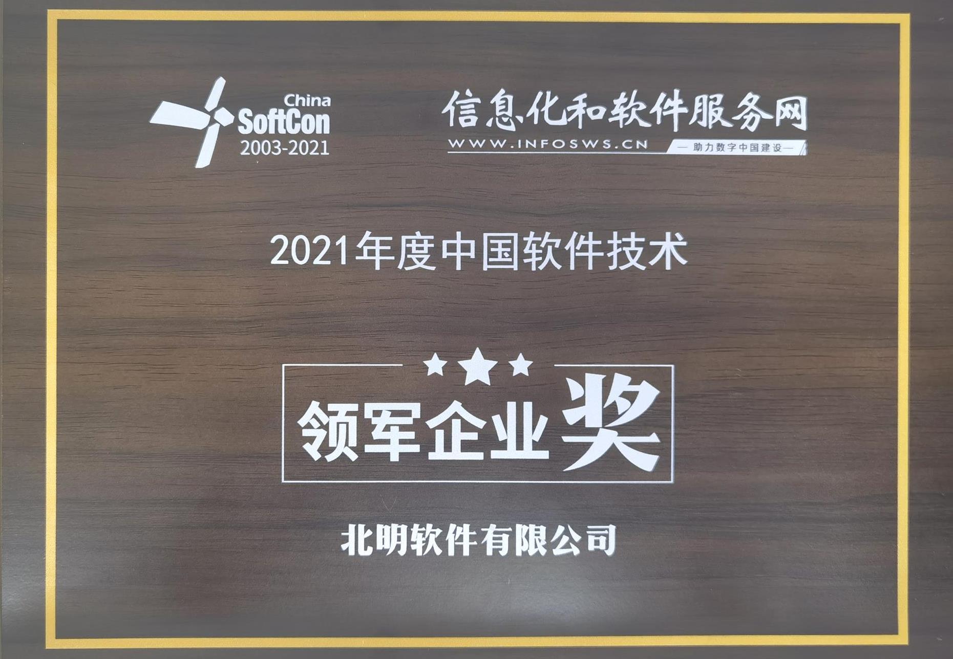 2021年度中国软件手艺领军企业奖