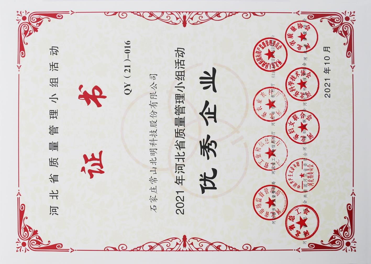 2021年河北省质量管理小组运动优异企业