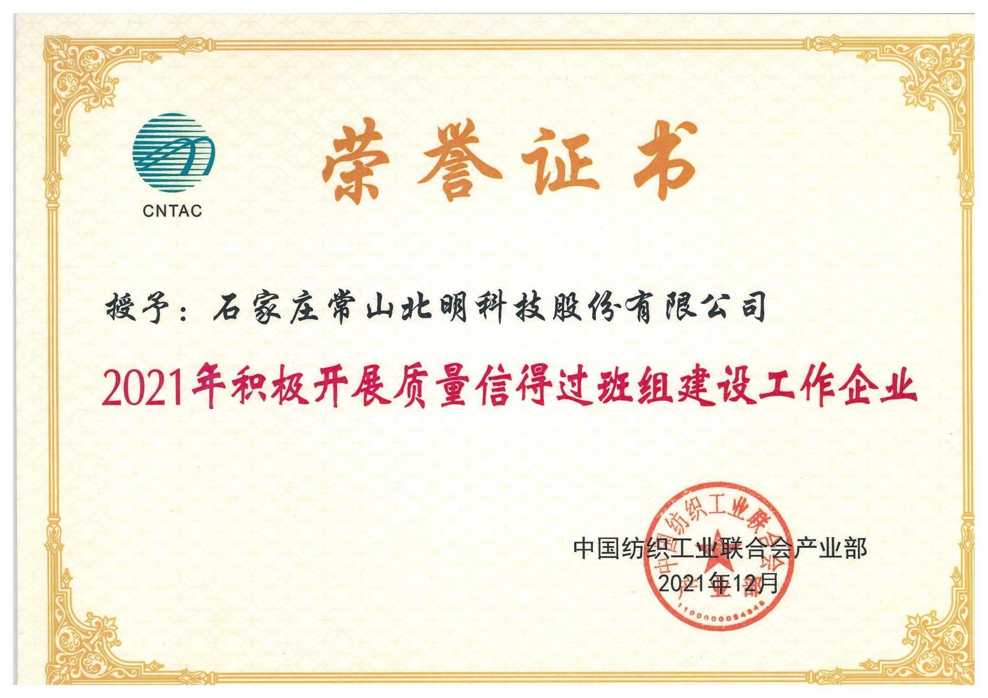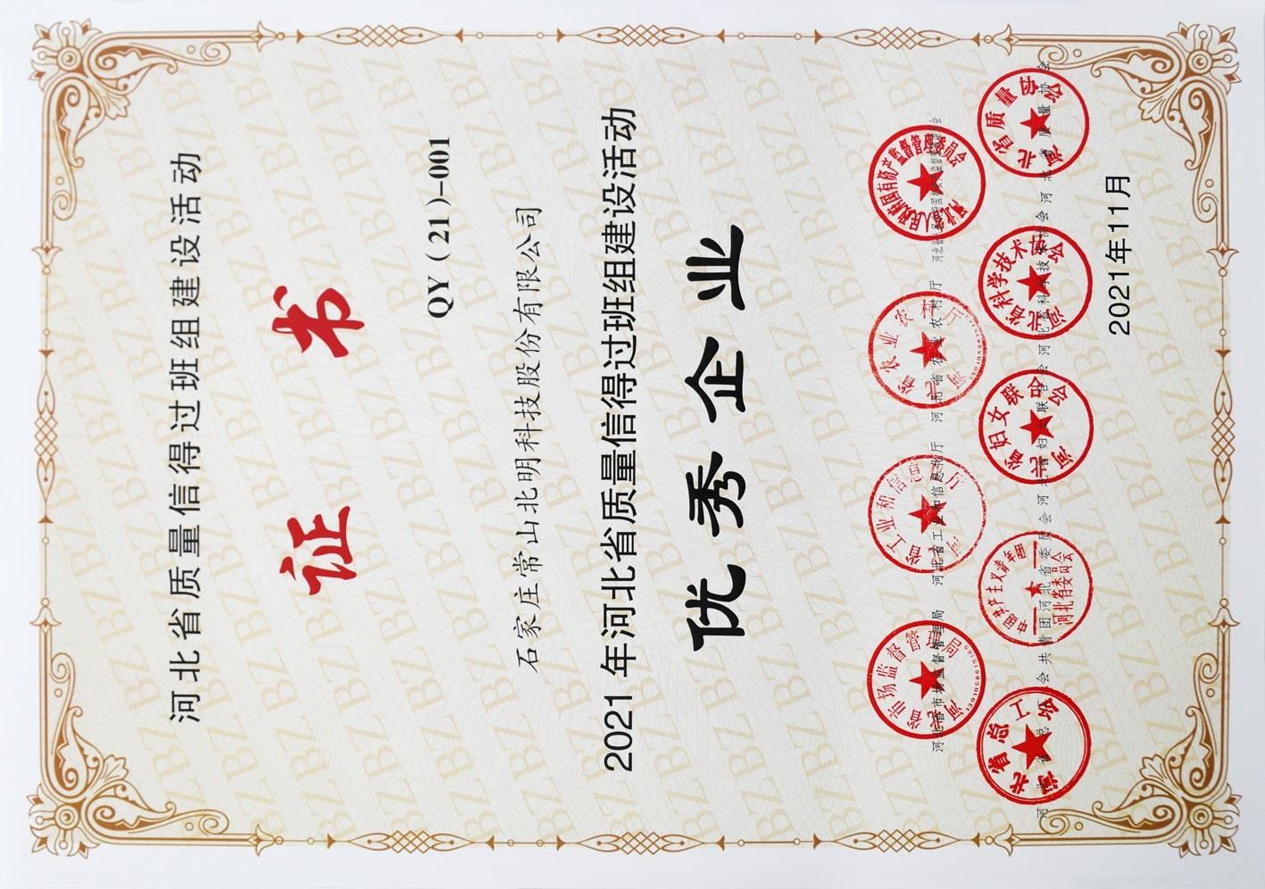 2021年河北省质量信得过班组建设运动优异企业