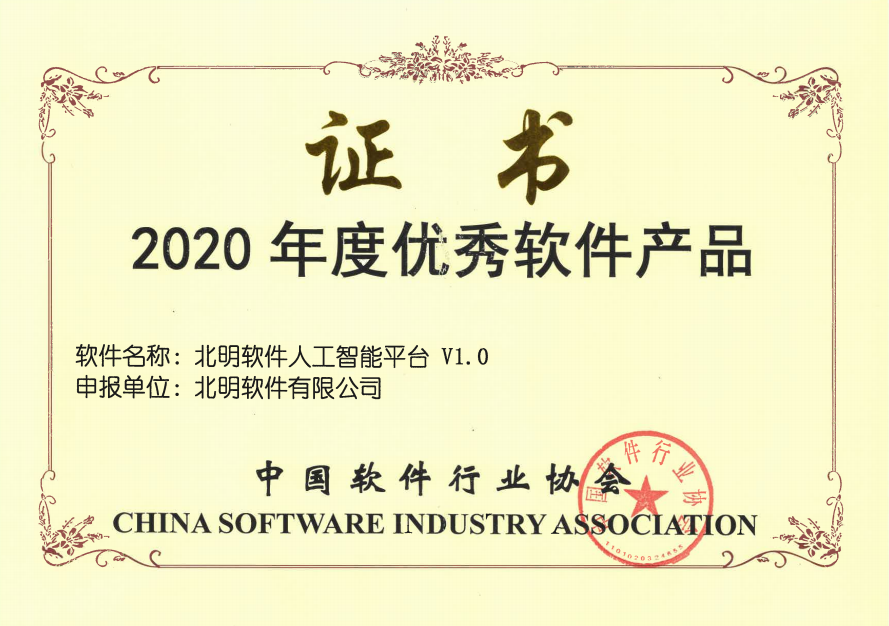 2020年度优异软件产品证书—非凡国际软件人工智能平台