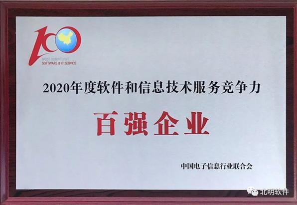 2020年度软件和信息实时服务竞争力百强企业